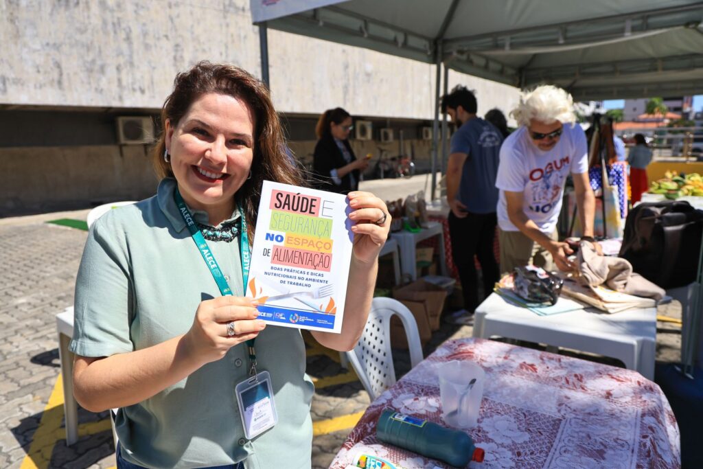 Durante a feira de produtos orgânicos, a equipe da Célula de Saúde e Segurança do Trabalho também orientou servidores e visitantes sobre a forma correta de higienizar frutas e verduras.