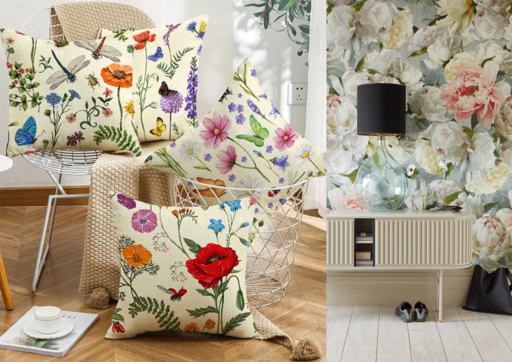 Os florais nunca saem de cena na primavera, mas em 2025 aparecem em versões mais leves e sofisticadas. Prefira estampas delicadas para cortinas, capas de almofada, roupa de cama ou até papel de parede. O truque é equilibrar com elementos neutros para manter a harmonia visual e não sobrecarregar o espaço.