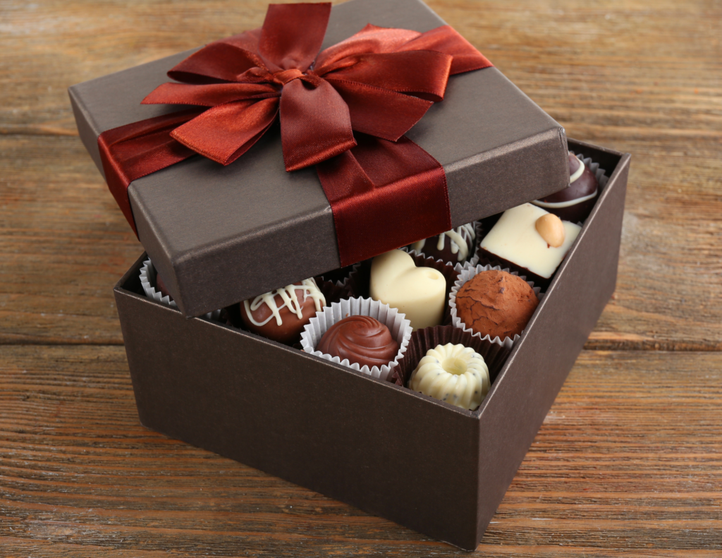 • O presente precisa ser algo doce, como bolos, cookies, barras de chocolate, cupcakes ou cestas temáticas.