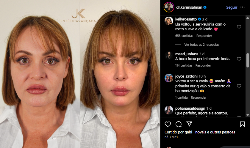 O outro lado, como esperado, questionou a transformação. Parte dos comentários dizia que ela “mexeu demais”, enquanto outros apontavam o risco de celebridades passarem por um ciclo de intervenções sem fim em busca de juventude eterna. Mas em meio a críticas e elogios, também houve comentários divertidos e até criativos. Afinal, não parece a versão Paulina e Paola da mesma pessoa?