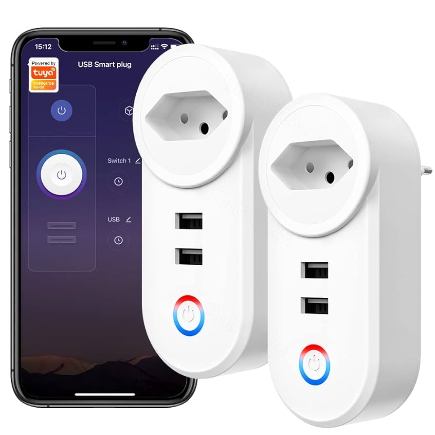 1. Tomadas inteligentes (plug & play) Controle luzes ou aparelhos via app, ligue/desligue remotamente e monitore consumo.