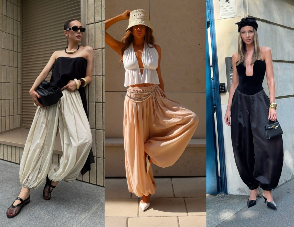 A calça aladim marcou presença com sua modelagem folgada e vibe confortável. Para muitos, foi um respiro bem vindo em meio às silhuetas ajustadas. Já outros acharam o volume exagerado e pouco favorecedor. O interessante é que, apesar da divisão, o modelo ganhou espaço tanto no street style quanto em looks casuais do dia a dia. A discussão sobre proporções e equilíbrio dominou as redes.